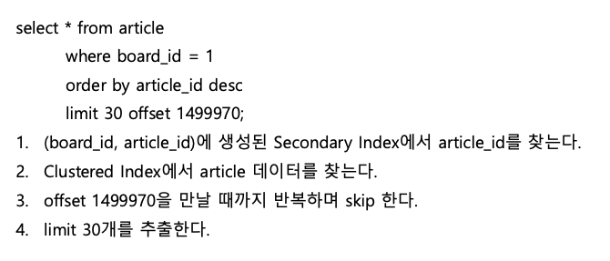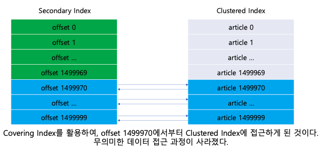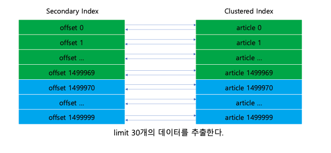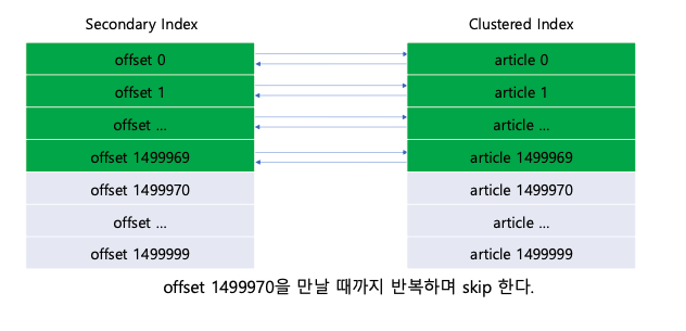 당연하게도 article_id 추출을 위해 세컨더리 인덱스만 탄다고 해도 offset 만큼 추출이 필요하다.